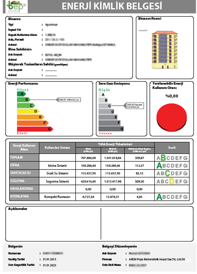 YENİ TASARLANMIŞ BİNA ENERJİ KİMLİK BELGESİ